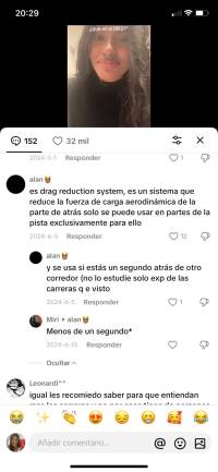 Dentro del texto, el autor menciona el performance como uno de los tipos de alfabetismo mediático, definiéndolo como “la capacidad de adoptar identidades alternativas con el propósito de improvisar y descubrir”. (Jenkins et al. 2006) Y también mencionan Networking como “la capacidad de buscar, sintetizar y diseminar información” (Jenkins et al. 2006). Un ejemplo claro de esto es mi cuenta de TikTok en la que me dedico a subir videos de Fórmula 1, en este tipo de videos, comparto información de interés, resúmenes de carreras, noticias relevantes y explicaciones sobre circuitos o funcionamiento de la F1 e interactúo con fanáticos usuarios de la plataforma. Por otro lado, también comparto videos con audios virales y los relaciono con la F1, de manera que generen cierta cercanía con los demás.