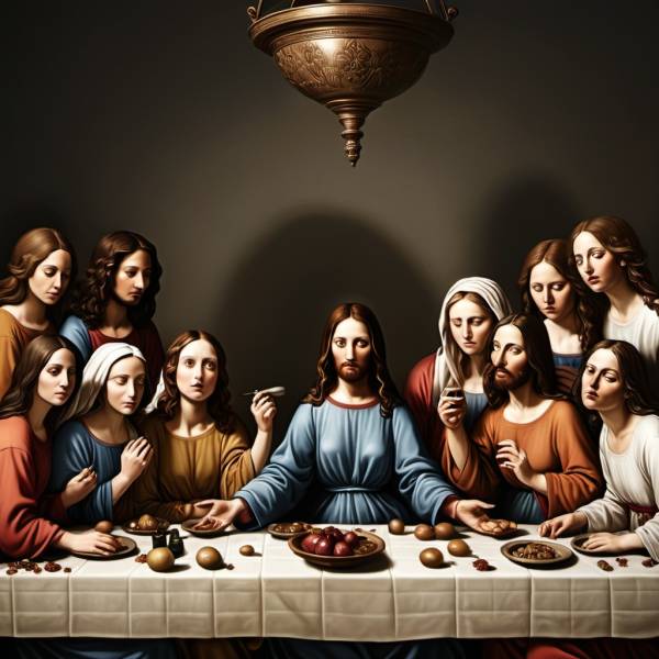 Use la herramienta Create AI. La instrucción que le di a la IA fue hacer una imagen basada en La Última Cena de Leonardo Da Vinci, pero que todas fueran mujeres.