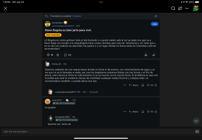 Mi algoritmo de Reddit tiene dos versiones, la página que es posts populares y la página que es sobre comunidades que yo sigo. El primero que tiene que ver con la página que le llama la aplicación “popular” o cómo mejor se entiende: Trending. La aplicación es bastante clara en la forma cómo muestra las publicaciones, la más obvia es basada en contexto desde donde se entra a la aplicación, siendo comunidades que sean centradas en Colombia, Bogotá o Medellín, comunidades que uno entendería que publican contenido interesante sobre estos lugares, pero en realidad es una comunidad que ve este foro cómo método de desahogo y chisme, en donde lo más común es publicaciones de temáticas de infidelidades, cuánto gana la gente en Colombia, consejos de inversión y propaganda política. Segundo el algoritmo de todo Reddit se basa en la frase: “porque viste X comunidad, te mostramos esto”. Entonces uno está consumiendo contenido basado en lo que yo busco, más que lo que me quiere mostrar la red social.