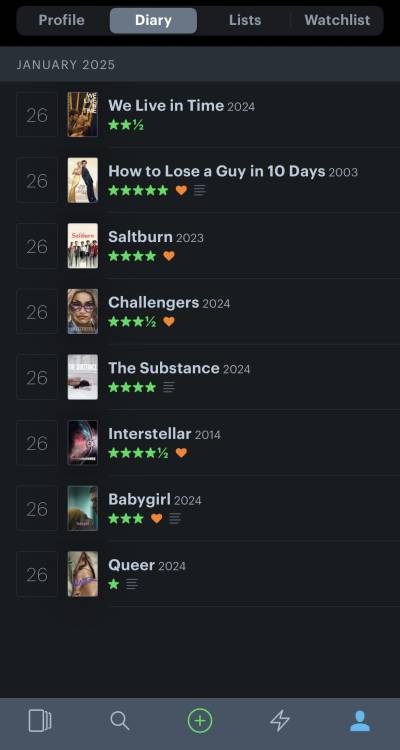 A continuación, una captura de pantalla de mis reseñas en Letterboxd: