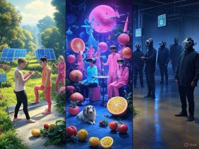 Modifica la imagen para que la distribución visual se vea asi: el panel izquierdo: El paraíso reinventado En esta versión moderna del Paraíso, el exuberante e idílico paisaje del Jardín del Edén original de Bosch se transforma en una utopía vibrante y llena de tecnología. En el centro, una pareja joven, vestida con elegante ropa de yoga, se encuentra en medio de un entorno natural floreciente, con sus manos agarrando sus teléfonos inteligentes mientras miran sus pantallas. Su atuendo refleja un enfoque en el bienestar y la atención plena, mientras que los teléfonos inteligentes significan la presencia ineludible de la tecnología, incluso en el paraíso. A su alrededor, mascotas como perros o gatos deambulan libremente, adornados con collares inteligentes que parpadean con pequeñas luces LED, mezclando el mundo natural con la innovación moderna. El paisaje orgánico estalla en verdes, azules y rosas vivos, con árboles imponentes y arroyos que fluyen, pero elementos futuristas sutiles, como paneles solares con forma de flores de gran tamaño o estaciones de carga eléctrica enclavadas entre las vides, insinúan una fusión armoniosa de naturaleza y modernidad. La escena es serena pero surrealista, con detalles fantásticos como mariposas brillantes o pájaros con alas mecánicas, que hacen eco del estilo imaginativo de Bosch.