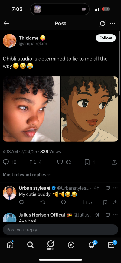 Descripción del reto: El reto consistía en generar una imagen personal con el estilo característico de las películas de Studio Ghibli, como Mi vecino Totoro o El viaje de Chihiro, utilizando herramientas de Inteligencia Artificial como ChatGPT combinado con plataformas de generación de imágenes (por ejemplo, DALL·E, Bing Image Creator o Midjourney). Las personas escribían prompts creativos describiendo su apariencia, atuendos y entorno ideal, y la IA les devolvía una versión animada inspirada en la estética nostálgica y mágica de Ghibli. Lo publicaban en redes como Instagram, TikTok o X, acompañado de frases como “si yo fuera un personaje de Ghibli”.