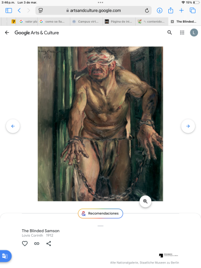- A donde fueron donde iniciaron y donde terminaron. Comenzamos el recorrido en la sala interactiva de videos 360º donde exploramos algunos video como: la cima de Zaha Hadid, luego fuimos a brugel: la caída de Los Ángeles rebeldes. Y terminamos esta sección en la nebulosa de Orión. Posteriormente, descubrimos las obras clasificadas de color y exploramos las obras verdes y rojas terminando en la pintura el Sanson ciego, obra alemana.