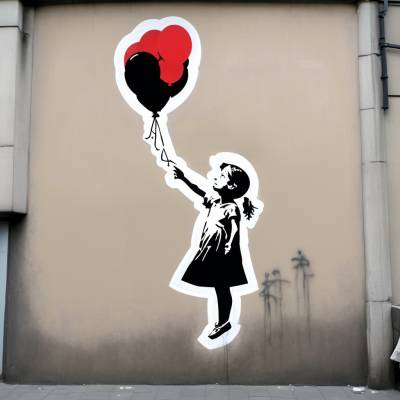 Utilizando OpenArt AI, le pedí que modificara la obra “The Girl with balloon” de Banksy a que la niña volara junto a los globos.